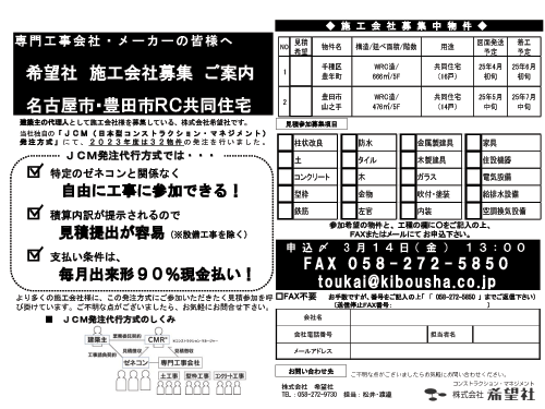 | 担当者 | 株式会社希望社 松井・渡邉 |