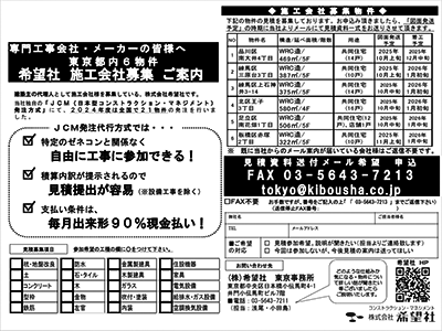 東京の物件について“JCM(日本型コンストラクションマネジメント)方式”で総合建設会社、専門工事会社の募集を行っています。